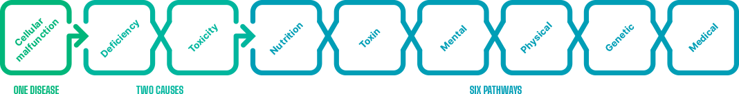 There are only Two Causes of cellular malfunction: deficiency, cells are not getting what they need; or toxicity, cells are being poisoned by something they do not need.